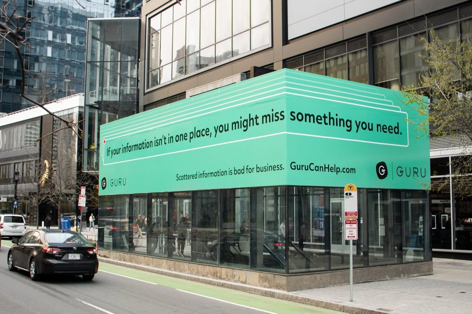 Guru needed to get the word out about what they do, but it’s a bit complicated to explain. Essentially, they’re a software company that helps eliminate useless information overload at work with a next-gen enterprise intranet. So we took full advantage of a high-volume media plan to create attention-grabbing OOH that overloaded people with, you guessed it, useless information. We made Guru stand out as a simple source of truth across a massive media buy in SF, NYC, and Boston. Writing credit to CD’s Dave Kuhl and Peter Sayn-Wittgenstein.